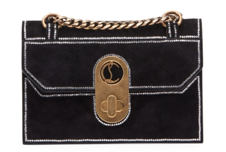 The Christian Louboutin Elisa Mini Suede Strass Shoulder Bag is so sophisticated, just perfect for this high fashion work event side by side with her French lady boss Sylvie.