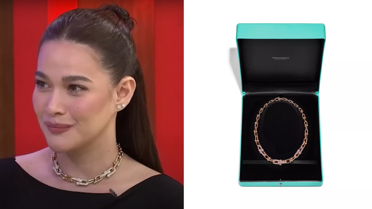 In her appearance on Tito Boy’s show, Bea showcased her impeccable sense of style, accentuating her radiant beauty with a Tiffany&Co. Tiffany HardWear Graduated Link Necklace in Yellow Gold with Pavé Diamonds. This exquisite piece, valued at $75,000.00 or approximately Php4,080,562.50 + tax, perfectly complements her elegant and sophisticated persona.