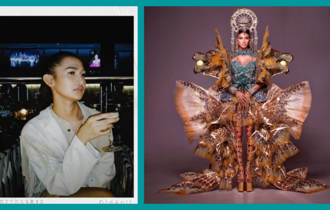 If you want old Hollywood glamour, Micca Rosal’s pre-pageant shoot with Jai Murcillo will give you just that. Micca looked like she stepped out of a 50s’ movie in a nude and salmon pink siren gown with delicate beadwork by Reynold Tenerife. Her pin-up hair and fresh peach makeup channel the vintage glam vibe.