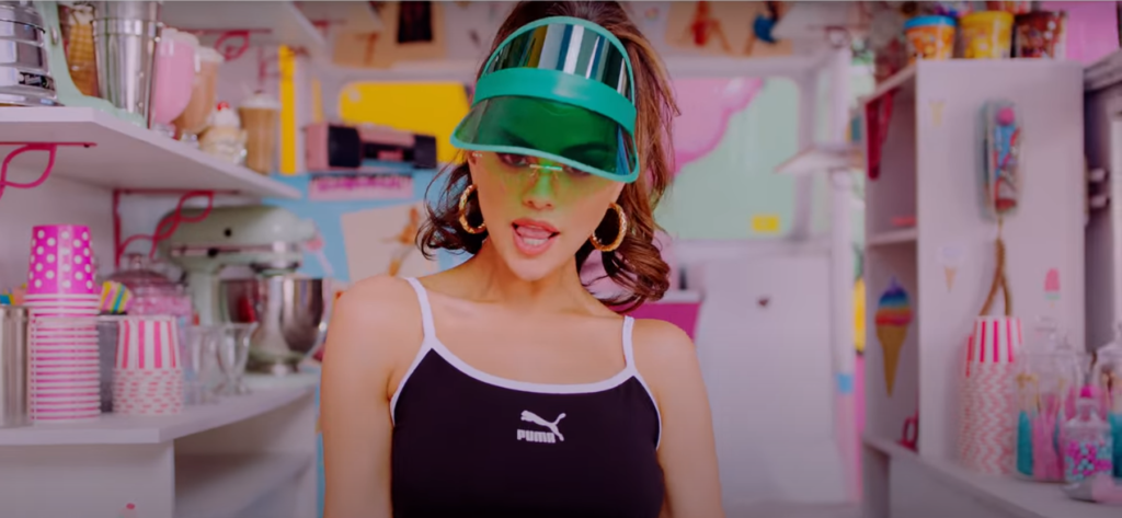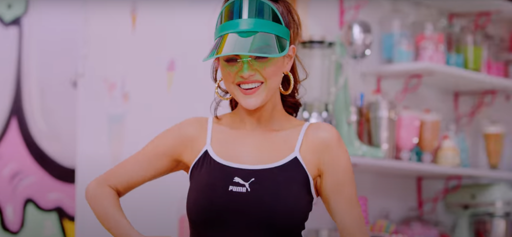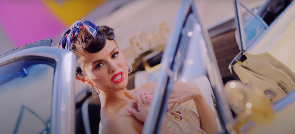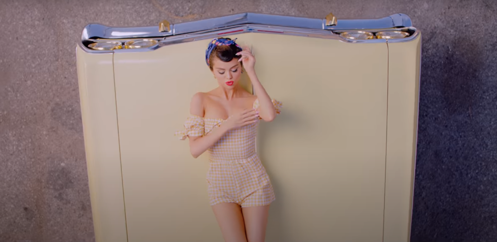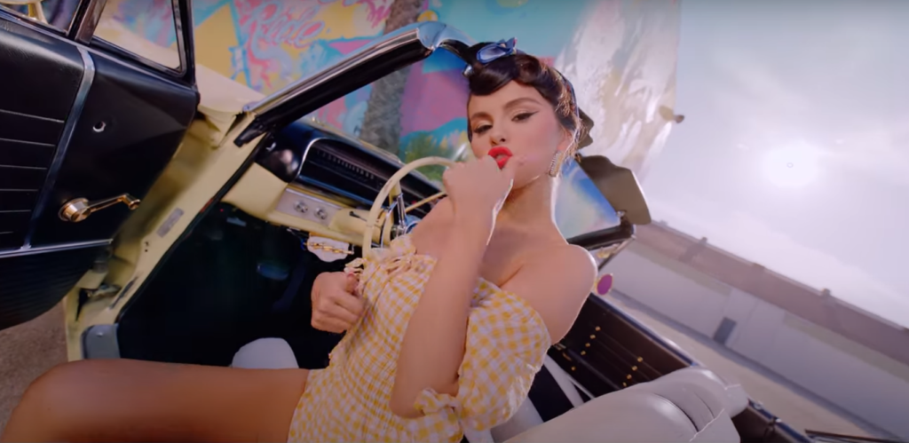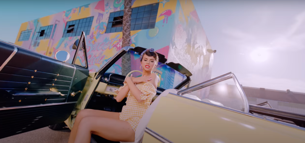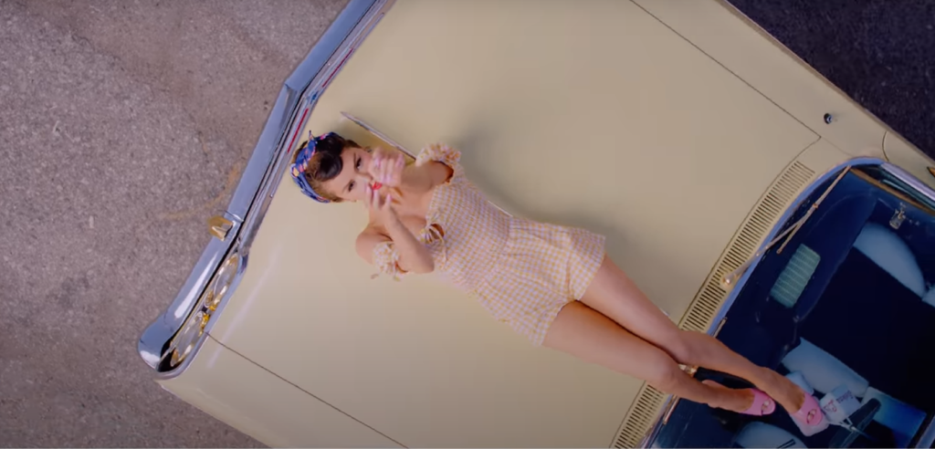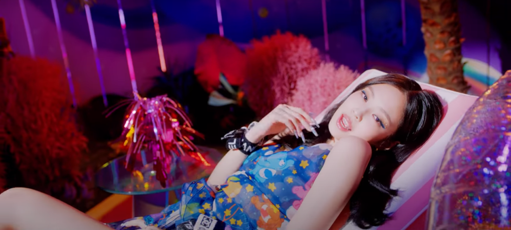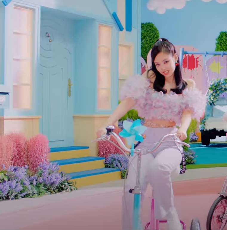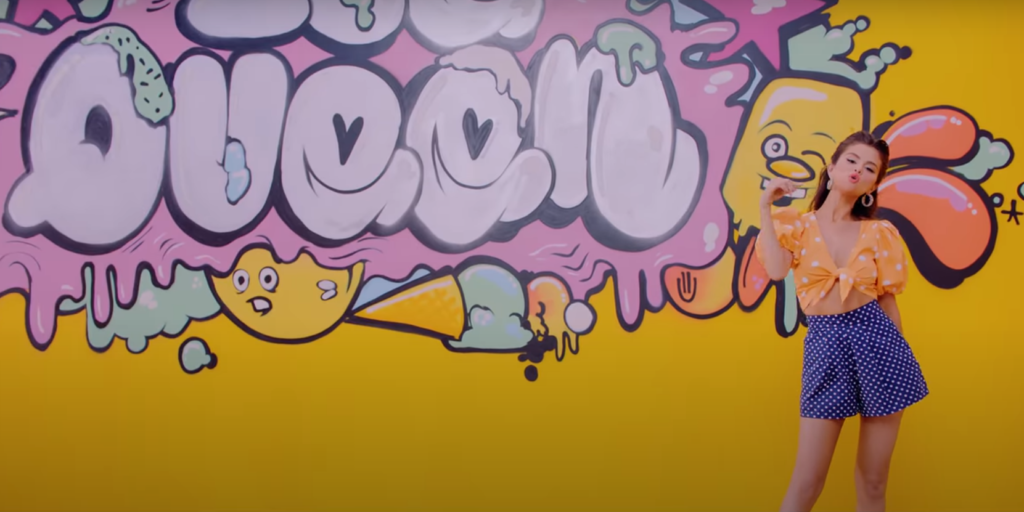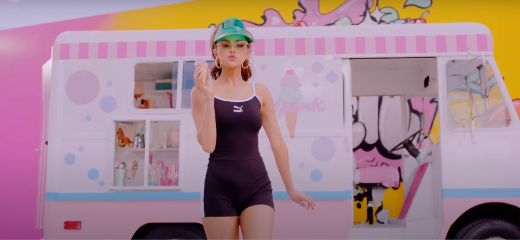 Look at Jisoo’s baker-style cap, a mainstay in Maria Grazia Chiuri’s Dior collections for quite some time, and was on the catwalk once again for the houses’s autumn/winter 2020 presentation last February. The designer’s signature birdcage veil is added to her hat for that high-fashion feel. This is some serious summer night chillin’ look right here by Jennie: a pair of leather shorts matched with a floral printed top with that long train, paired with a nice pair of stilettos.Of course, the human Chanel is rockin’ those wrist accessories. And how beautiful is this blue eyeshadow on her? Reminds me of ’90s summer beauty looks:This pink balloon set design is a breath of fresh air, especially because most of the time, the girls are all about edgy, fierce vibe when they’re performing. Lovin’ this satin blue pajama top on Lisa– very ’90s  ala Creep by TLC, and Rose in that  yellow checkered coordinates look is also very ’90s like Cher in Clueless: Selena in this PUMA outfit tho. She is such a sexy bombshell!I am seriously obsessed with Selena’s green sun visor here: This polkadot-on-polkadot ensemble is too cute on Selena, too:Rose in this yellow floral dress with puffed sleeves, with this doggo:The tennis court scene is nice. Sporty preppy look with Jennie’s Chanel belt bag, because why not?Jisoo is always given the feminine hair accessory because just look at that stunning face. Also lovin’ Rose’s purple braided hair and Jennie’s Chanel hair clip here. And did you notice Lisa’s green hair?!Of course, Jisoo is rockin’ that high fashion Dior choker, as the BLACKPINK’s visual queen is  one of Dior’s global ambassadors:How precious is Jisoo in this headband awww:Are you feeling this Lisa’s look? She is always one with the fur coat recently, have you noticed?Her beauty look for this scene is too cool. Purple glitter in ya lips, yeah! She sure looks like chillin’ like a villain as what her rap verse says:This Parisian styling on the girls as they hang by the posh ice cream bar is everything. I loooove each look:I love Lisa’s asymmetrical dress! As well as the hats and nails in these frames:This muted yellow gingham off-shoulder romper on Selena Gomez is my favorite look in this video. That flirty, 1940s pin-up girl styling as she hangs by this cool pastel yellow vintage car makes her look so foxy and sexy, highlighting her classic beauty: