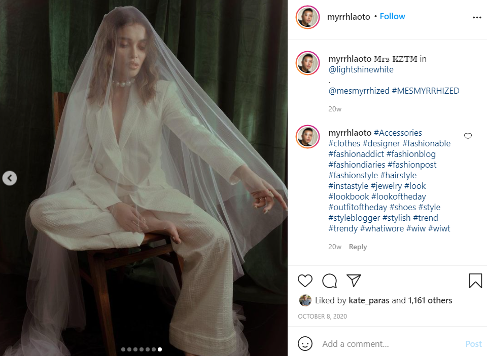 Filipina singer KZ Tandingan has made netizens so smitten over her rustic-themed wedding recently. Especially because of her sartorial choice for her big day: a chic pantsuit paired with a long veil from Light Shine White.