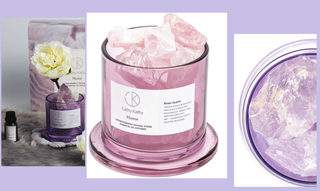Cathy Kathy Aromatherapy Crystal Stone Diffuser with Essential Oils comes with a handcrafted glass cover and container, with natural crystals and premium essential oils made with high-end fragrance specially formulated to be gentle on the natural crystals and you.