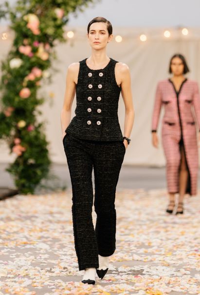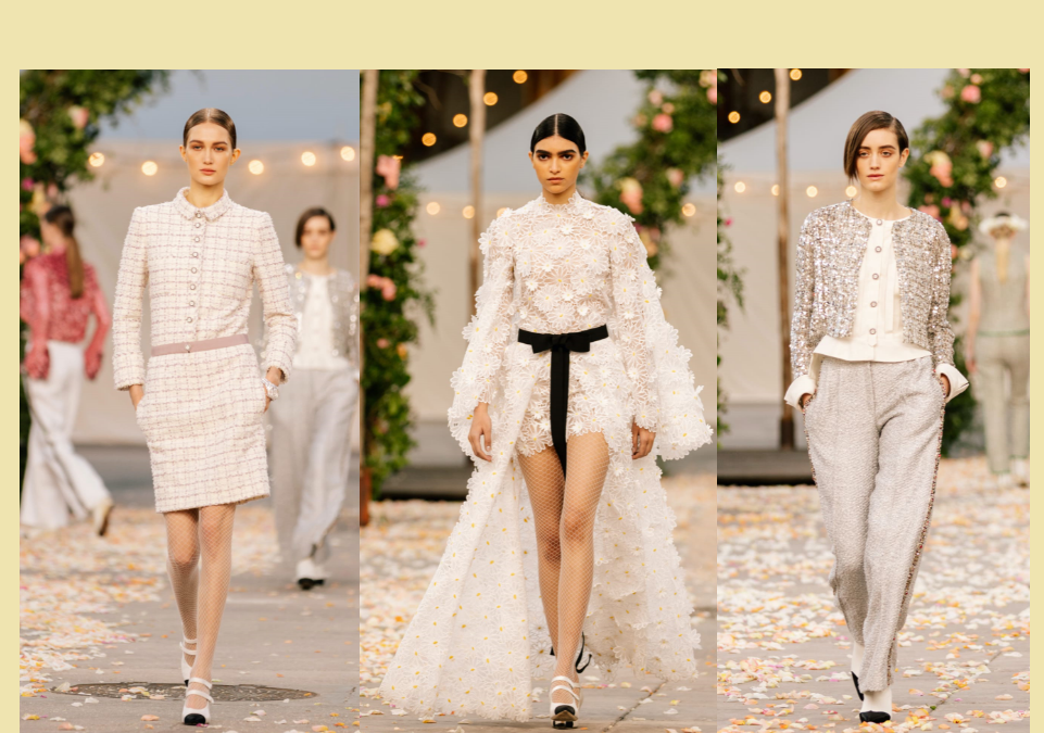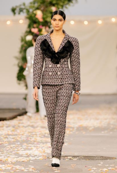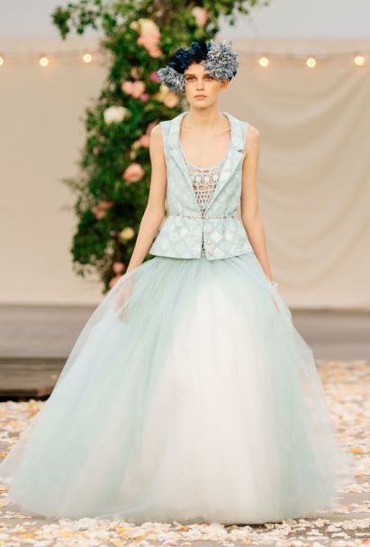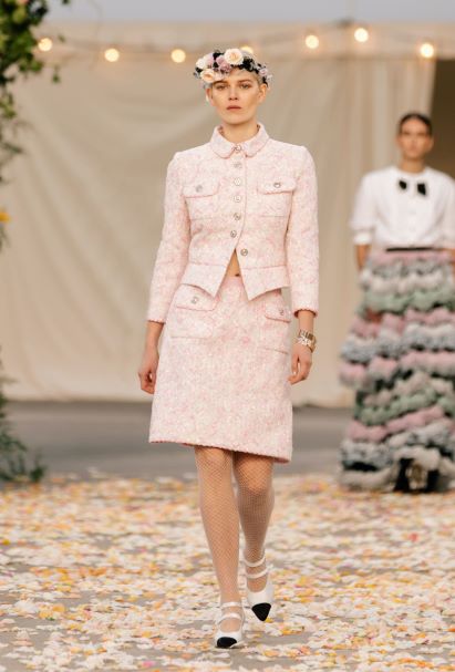 Chanel’s creative director Virginie Viard was inspired by wedding, but a “more bohemian style—more a wedding or a family celebration in a village than at the Ritz!” complete with “the mother and the aunt and the 15 year old girl dressing up for the first time”.