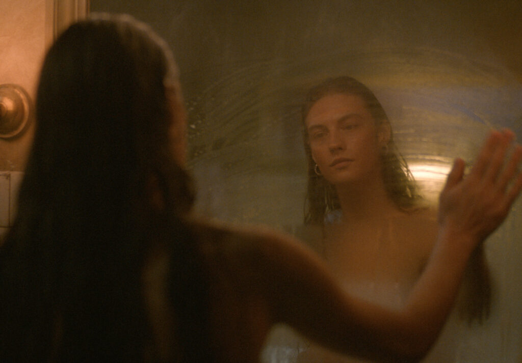In the short, Francesca is played by model and activist Harlow Monroe. Rousselet tracks Francesca’s transition over time, and the viewer sees Monroe embracing herself as she comes into her true identity. Throughout the vignette, a Christian cross motif appears—including from the very first scene, as a pendant. She does not hide her transition; Francesca is seen recognizing herself as female on an application. The final scenes show another ultimate desire: Francesca enters a nunnery, swapping her DIESEL denim for a habit, fulfilling both her own intentions and the pursuit of her faith.