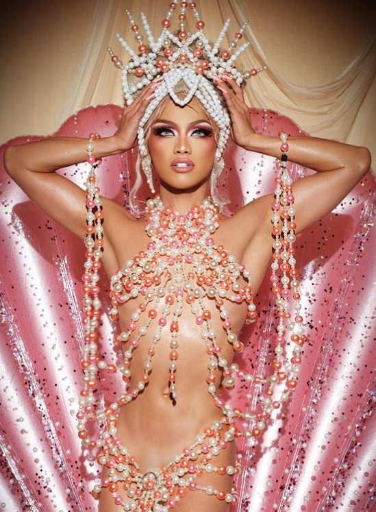 The “sexy golden goddess” ensemble is beaming with “white and pink pearls” with an “eleganza shell” indeed. It is giving some mermaid and burlesque queen vibes, with still a little touch of the Philippine identity.