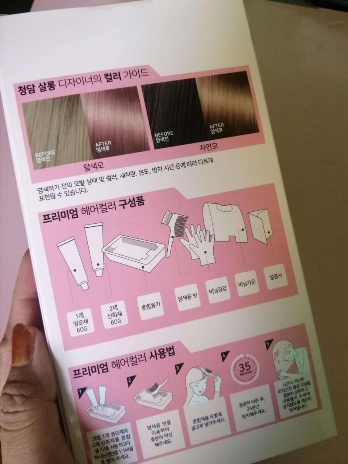 I am no expert in coloring my hair of course. But since I know that this DIY coloring kit is made by a premium South Korean beauty brand and a top-level salon at that, I was pretty confident I was going to have those bronzed/copper strands I’ve always liked. My first impression upon opening the kit was that I definitely loved that it came with a container, plastic hand gloves, hair comb and plastic cover to protect my clothes and skin from stains, and that the two tubes of formulations can easily be mixed together. No complicated steps to mix them, the instructions were pretty straightforward and super easy.
