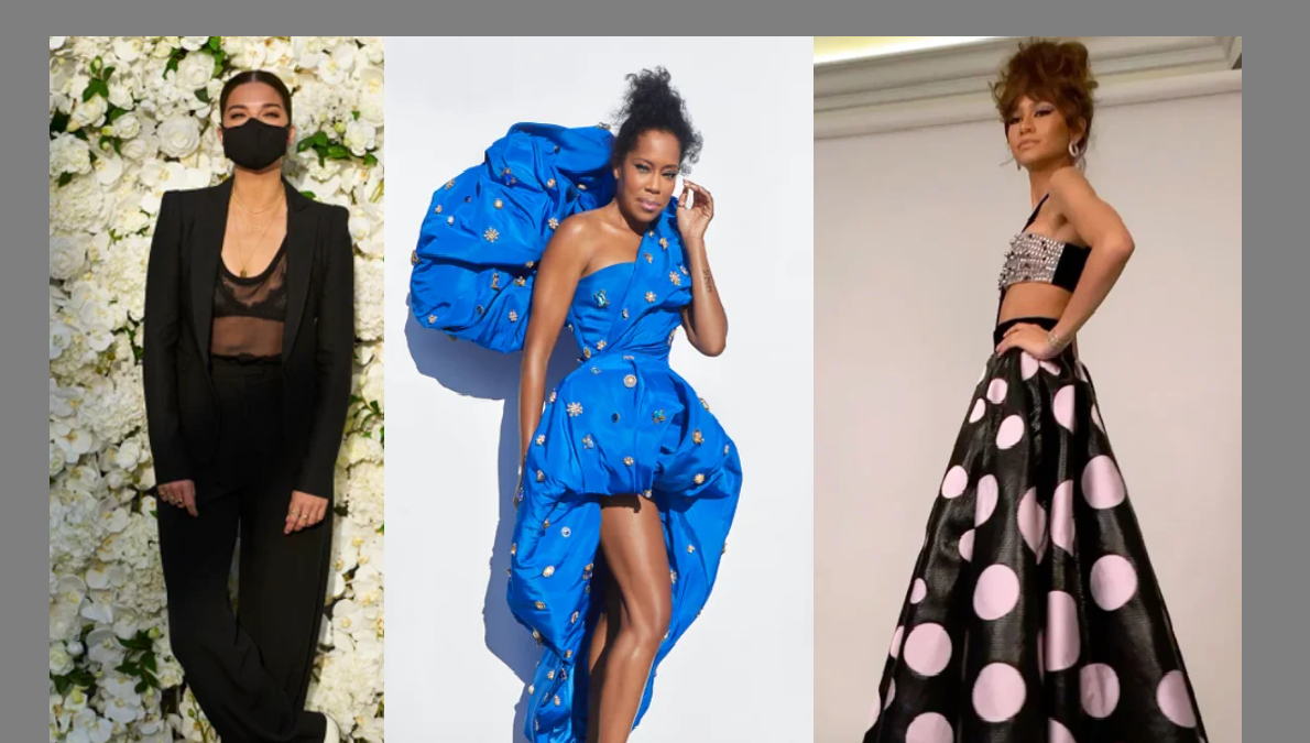 Before sitting down to receive her award, ‘Watchmen’ actress Regina King stuns in her at-home awards night fashion by wearing an electric blue gown studded with brooch details by Schiaparelli. The moment was cemented and captured as she was photographed by James Anthony. The star won the Outstanding Lead Actress in a Limited Series award that she received virtually at the comfort of her own living room.