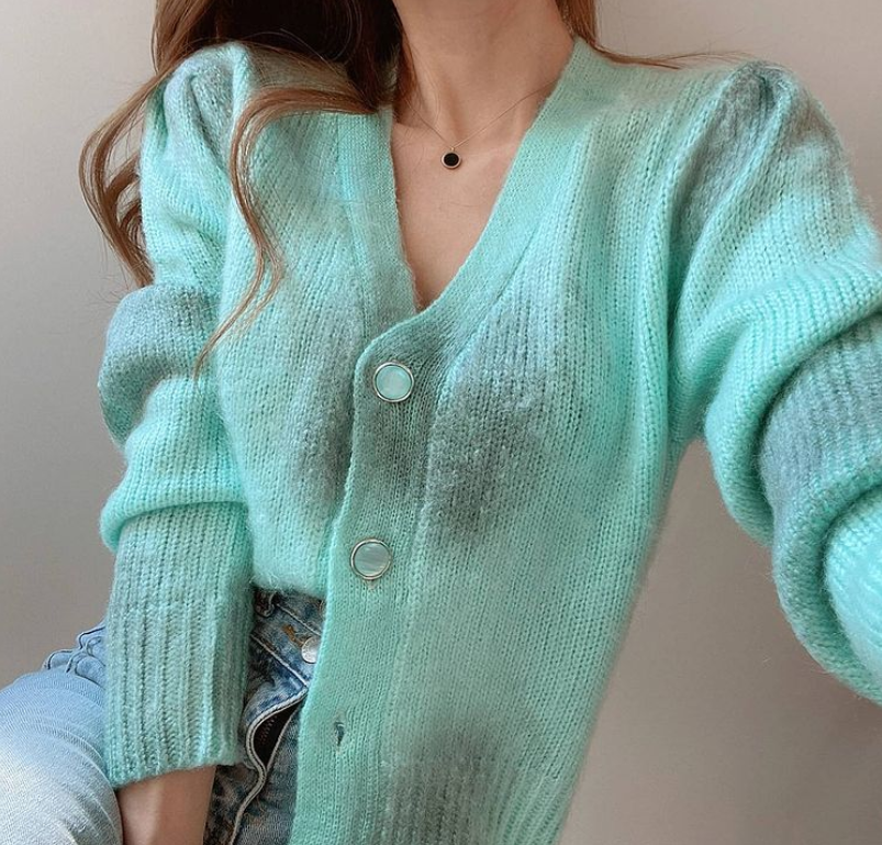 This pastel green cardigan by Camilla Co is light on the eyes.