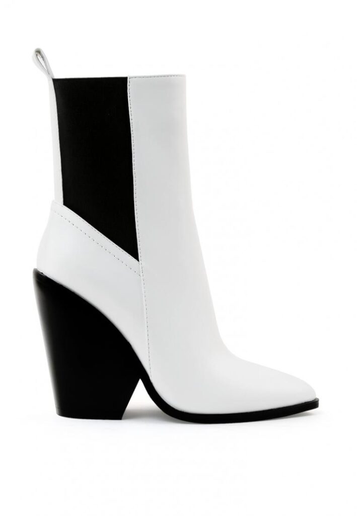 Some textures on your booties sure can make a difference. Shop this pair here.Add a little mod into your boots with this black and white color block from London Rag. Shop ’em here.