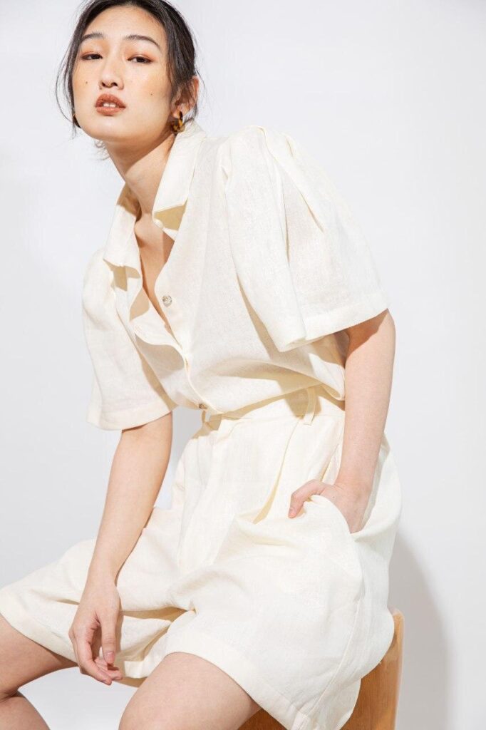 The Camisa Button Down Top in Ivory is light and fresh, perfect for casual lounging at home, or even for Zoom meetings. The butterfly sleeves are nice and dainty, too.