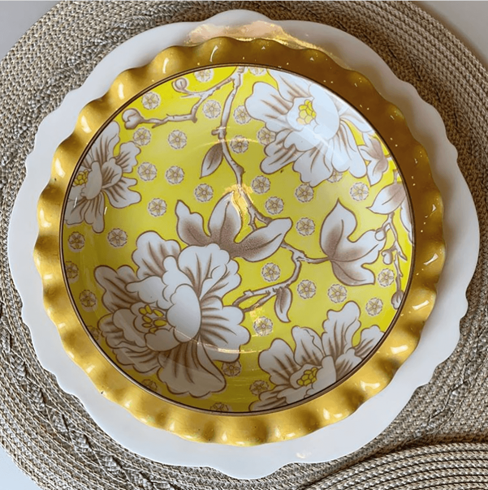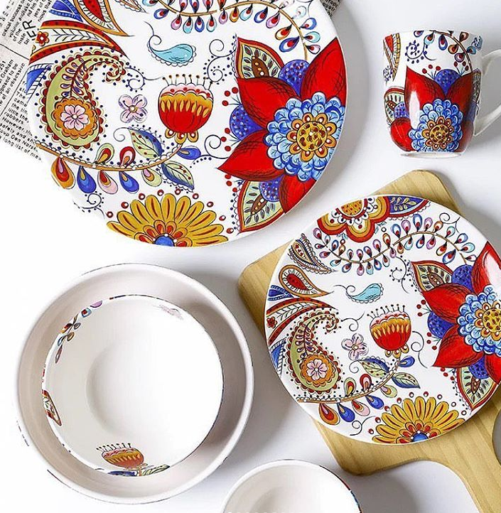 If you want more aggressive and colorful prints on your tableware, this Jardin de Fleur set by Plates&Beyond is for you.