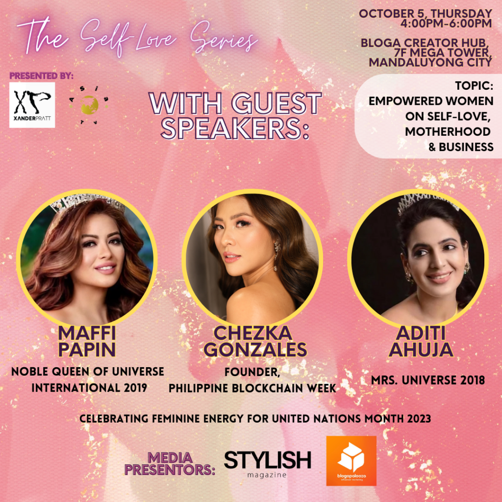 The Self-Love Series is going beyond the virtual world as we are gearing to launch the series of physical panel discussion sessions, starting at the Bloga Creator Hub in Mandaluyong City this October, in celebration of the United Nations Month 2023, as presented by the Xander Pratt fashion atelier, AsiaTV Studios and Stylish Magazine.