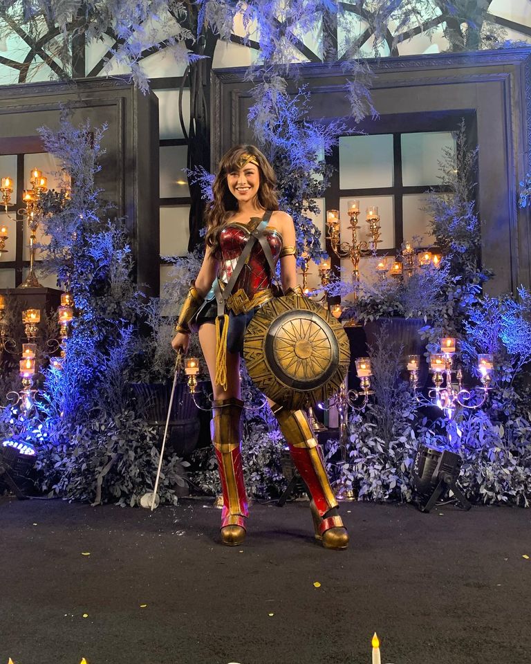 Cheska looks amazing trying to save the world in this cute WonderWoman suit.