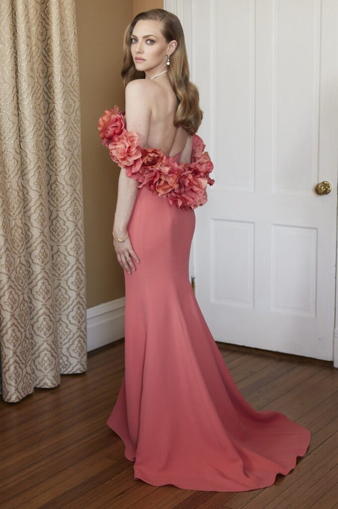 Amanda Seyfried, who is nominated for Best Performance by an Actress in a Supporting Role in Any Motion Picture for her portrayal of Marion Davies in Mank, is a vision in an Oscar de la Renta design: