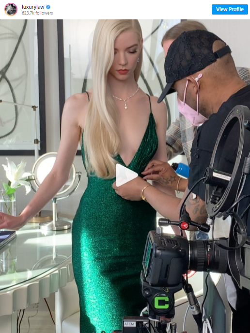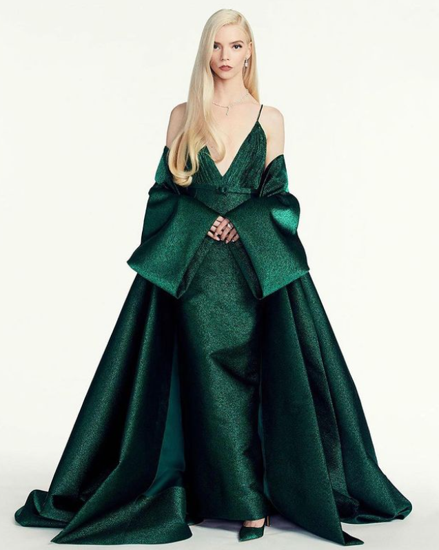 Anya Taylor-Joy, recognized by the Golden Globes for her work in The Queen’s Gambit, looks stunning in a green, show-stopping Dior Haute Couture dress and over $1 million of Tiffany & Co. diamonds, as seen in her stylist Law Roach’s Instagram: