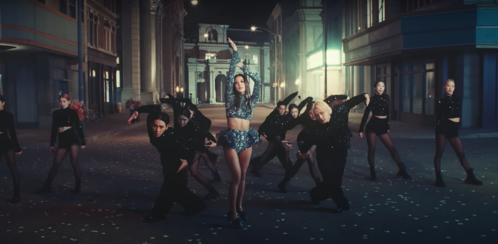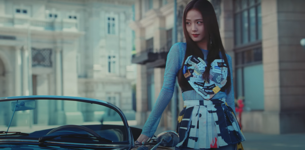 You cannot expect a BLACKPINK ish video without some glitz, glam & glitter! This coordinating outfit on Jisoo is just right for her almost-finale dance segment in the video. How cute is that puffy detail on her shorts?