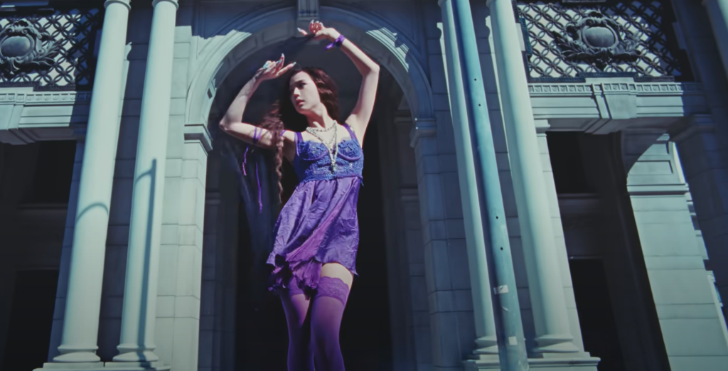 Our sweet little Jisoo seldom taps into her sensual side, but every time she does, she is bangin’! This purple lingerie-like outfit is both feminine and sexy!