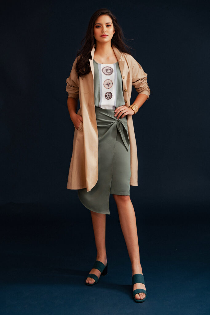 “A great deal of inspiration comes from nature and beautiful sceneries one gets to see in traveling,” Jojie Lloren shares. The brand’s latest spring-summer offerings range from airy oversized blouses and lightweight dresses, high-waist pants with pleated fronts and cinched hems, jumpsuits, and tiered skirts in modern nautical stripes. The sailboat and compass prints bring to mind past and future travels that come with joyful experiences and memories. The understated details and accents of this selection come in the form of knots, drawstrings, unconventional fasteners, and knife pleats.