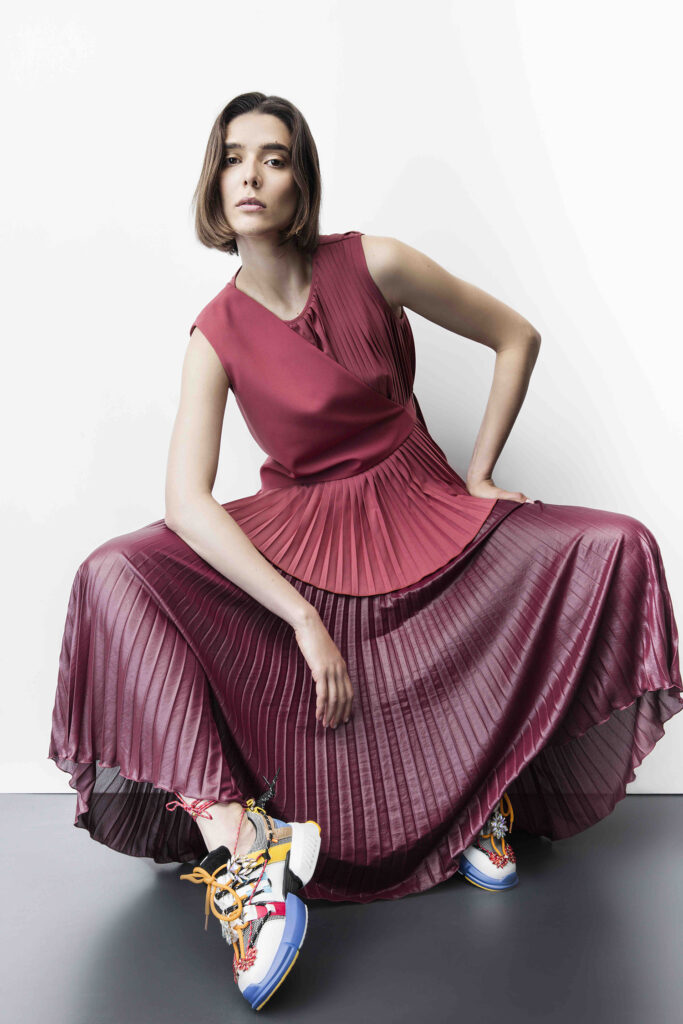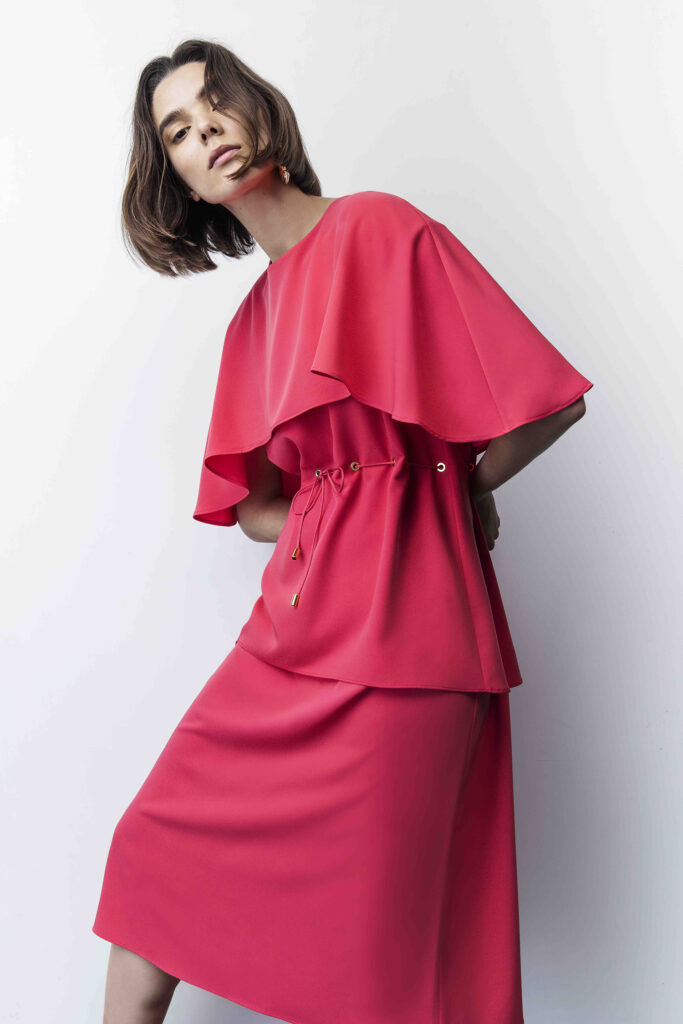 With asymmetrical and fluid silhouettes, each piece is light and comfortable to wear. The combination of soft structure with a little bit of geometry on each design shapes the style of a modern-day woman. Sober earth tones like mauve and bordeaux are the color palettes of this collection.