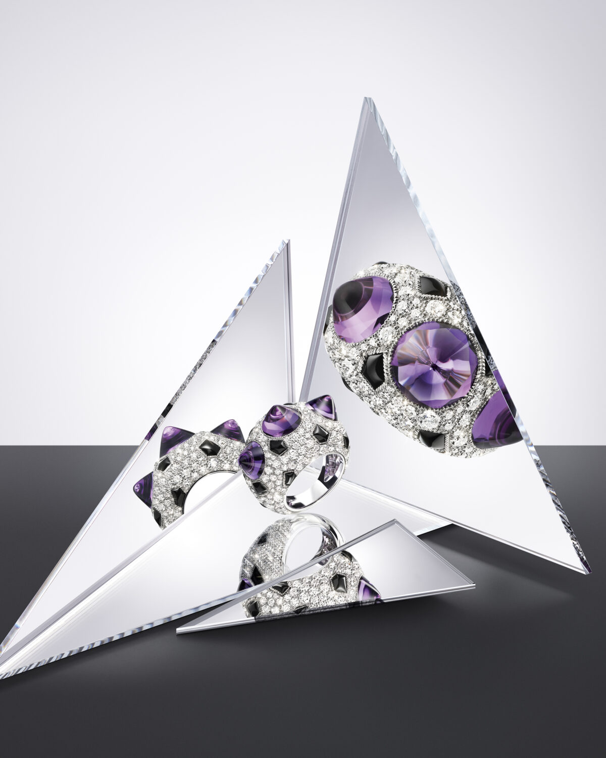 The collection explores all kinds of possibilities with a novel approach to using diamonds, onyx and amethyst.