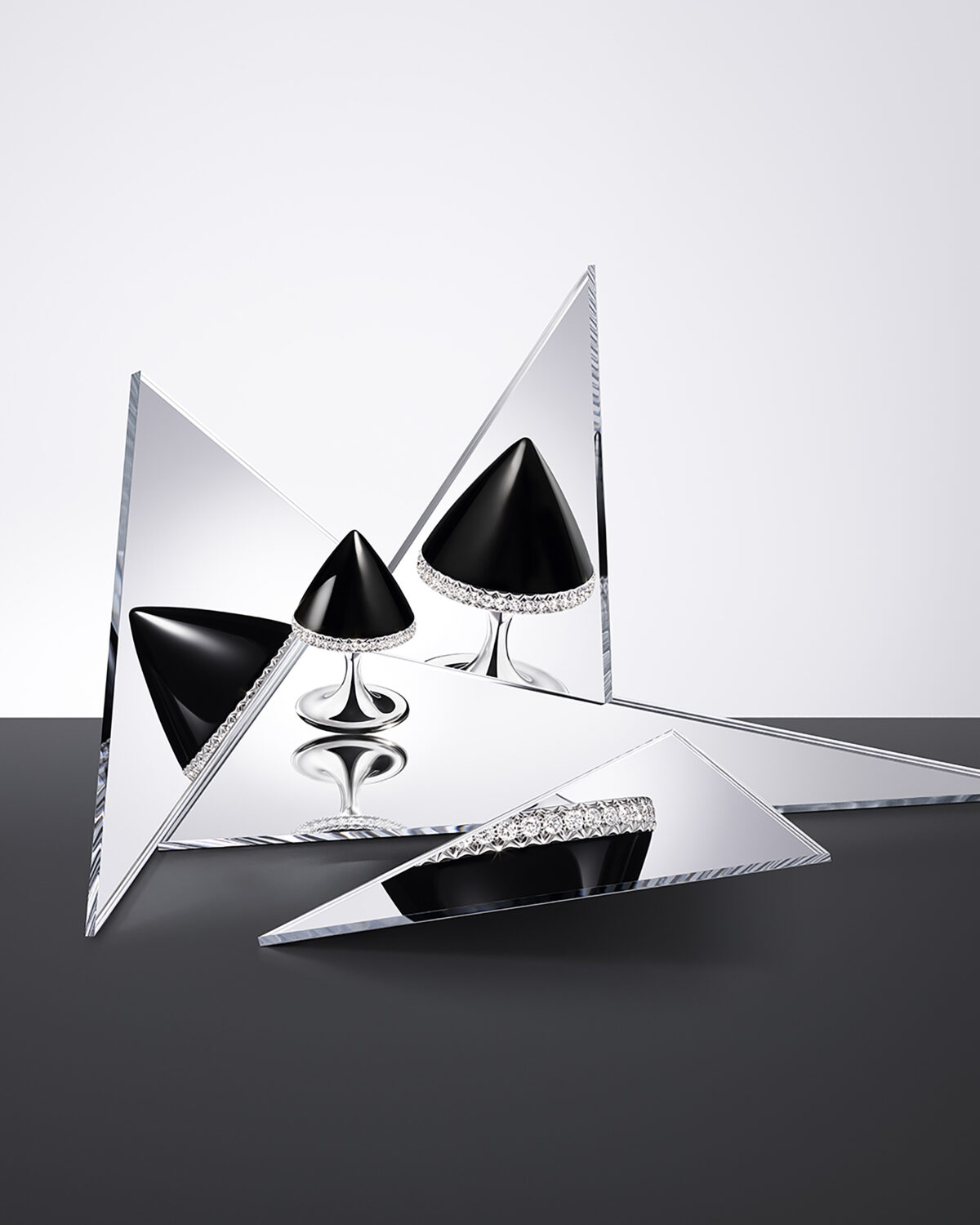 Truly extraordinary, these oversized studs in onyx and diamond cone have exquisitely unique proportions – more provocative than ever:
