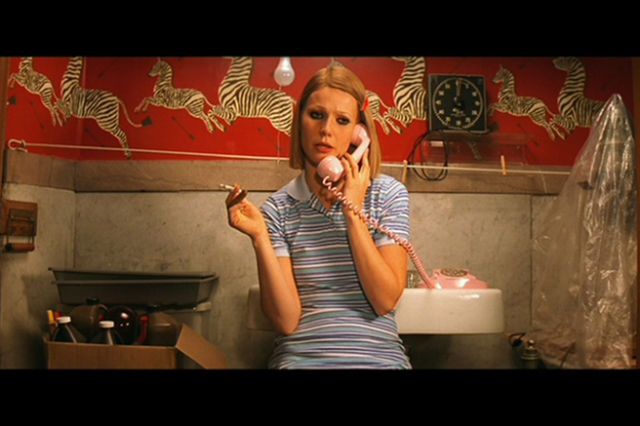 One of the remarkable and hands-down favorite style moments in this film is when Margot is in a bathroom sink smoking, in her neutral-colored négligée. Her style is just moody and retro, like she stole clothes from her mother’s closet, yet she looks so cool and chic. Put on your taupe slip dress, rock that hair clip, and go.