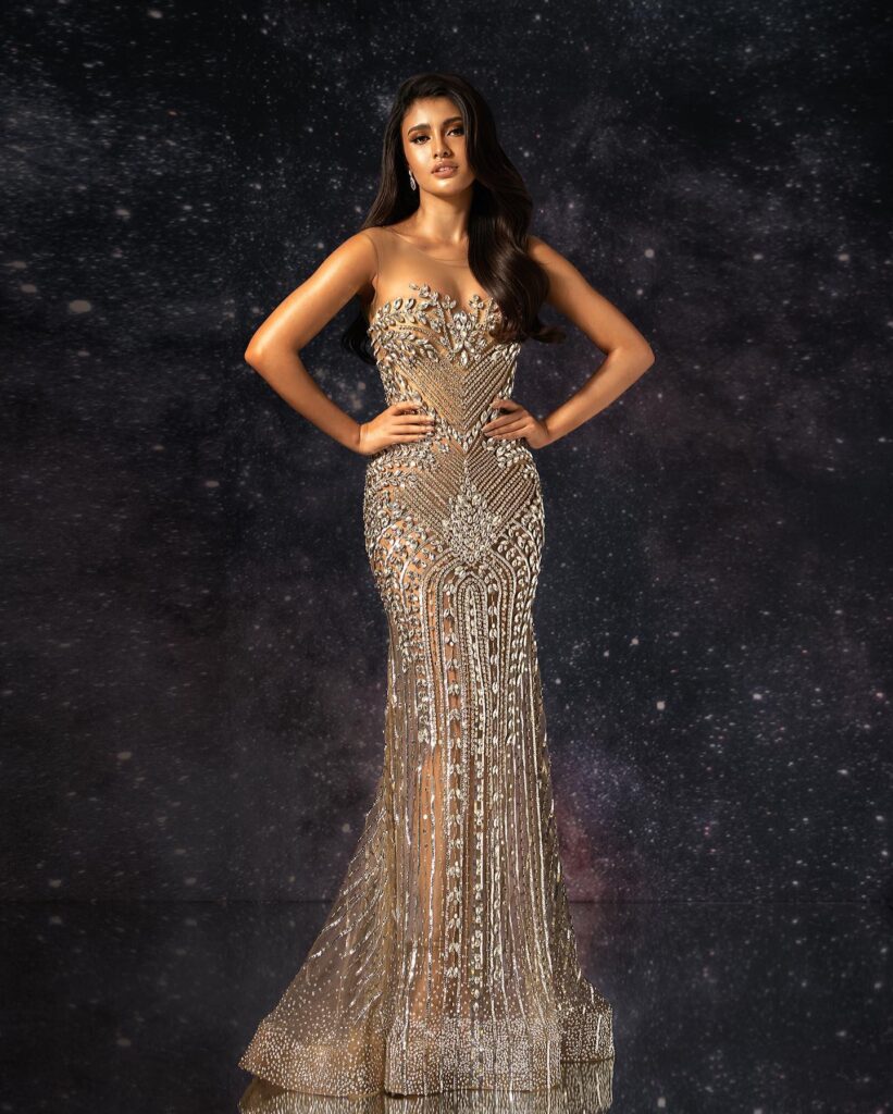 Earlier today, Miss Universe Philippines Organization released a set of photos of Rabiya by celebrity fashion photographer Seven Barretto. The beauty queen is wearing a creation by Filipino fashion designer Rian Fernandez.