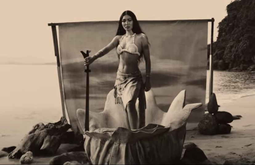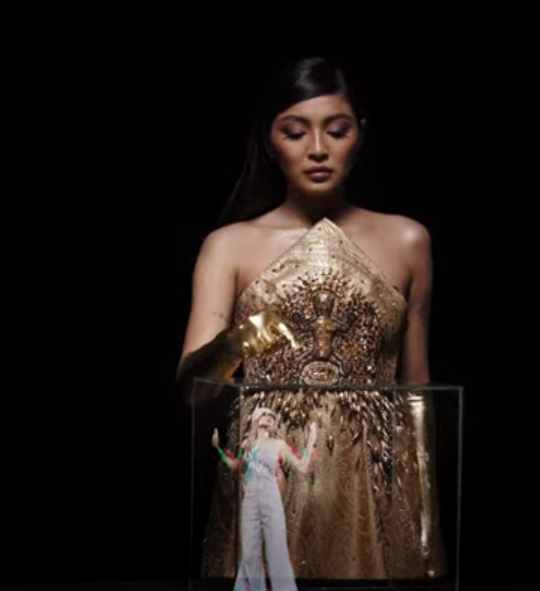 This music video also brilliantly incorporates a couple of Filipinina couture moments, highlighting elaborate butterfly sleeves, like this Job Dacon terno inspired by Juan Luna’s masterpiece Spolarium: