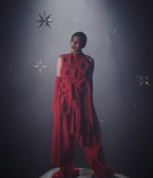Set in a cosmic world, Nadine’s first song is Dance With Danger, which is seemingly about a forbidden love. The visual aspect of the song is about a girl who’s finding her place in the universe. The artist stuns in this red avant-garde number:
