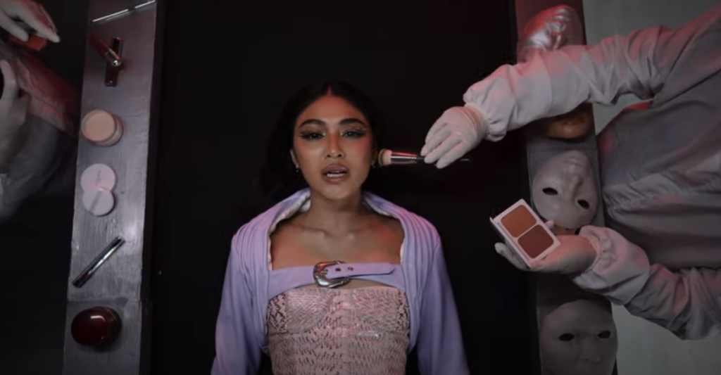 The visual story of this second song is about the celebrity life of Nadine as she navigates the many responsibilities of a star and the complexities of fame. Each scene is rich in eccentric aesthetics that let you into the complicated world of show business. My fave part is when Nadine is being glammed up like a mannequin, causing some goosebumps as you understand what it feels like to be like a product being sold into the celebrity business.