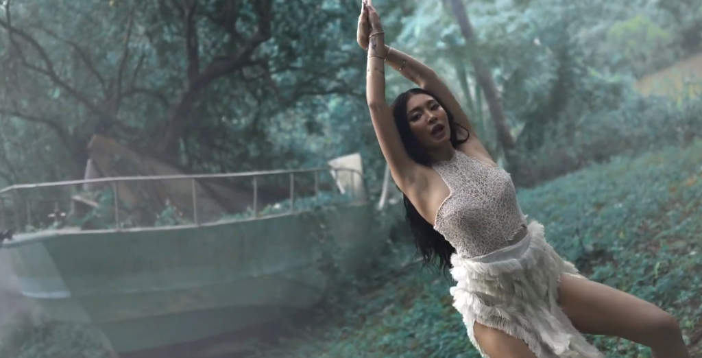 The film for Ivory is hands down my favorite. Although the intro for the song is about the singer’s advocacy of saving the nature, the song that follows lets you into a love trance. This track gives off that romantic, sensual vibe. The music video highlights Nadine in a sexier choreo too, in this custom-made Pat Trinidad couture: