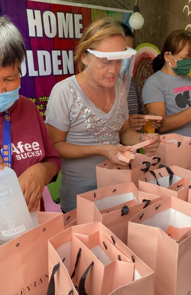“I feel like TÉVIANT‘s eye makeup products can boost anyone’s morale now that we are all wearing masks, and it is especially uplifting for our LGBT members at the Home for the Golden Gays. They still used to organize drag shows and perform before this pandemic so I am hoping once they can perform again, that our vanity mirrors and makeup products can help them beautify themselves again. I personally gave away grocery packages too, and I even met the iconic Markova herself who also stays at the Home. I watched her biopic movie where she was played by Dolphy and I was happy to meet her in person. I listened to their stories and learned some of their challenges. I wanna bring awareness that they too are affected by this pandemic and they also need help,” the makeup artist said.