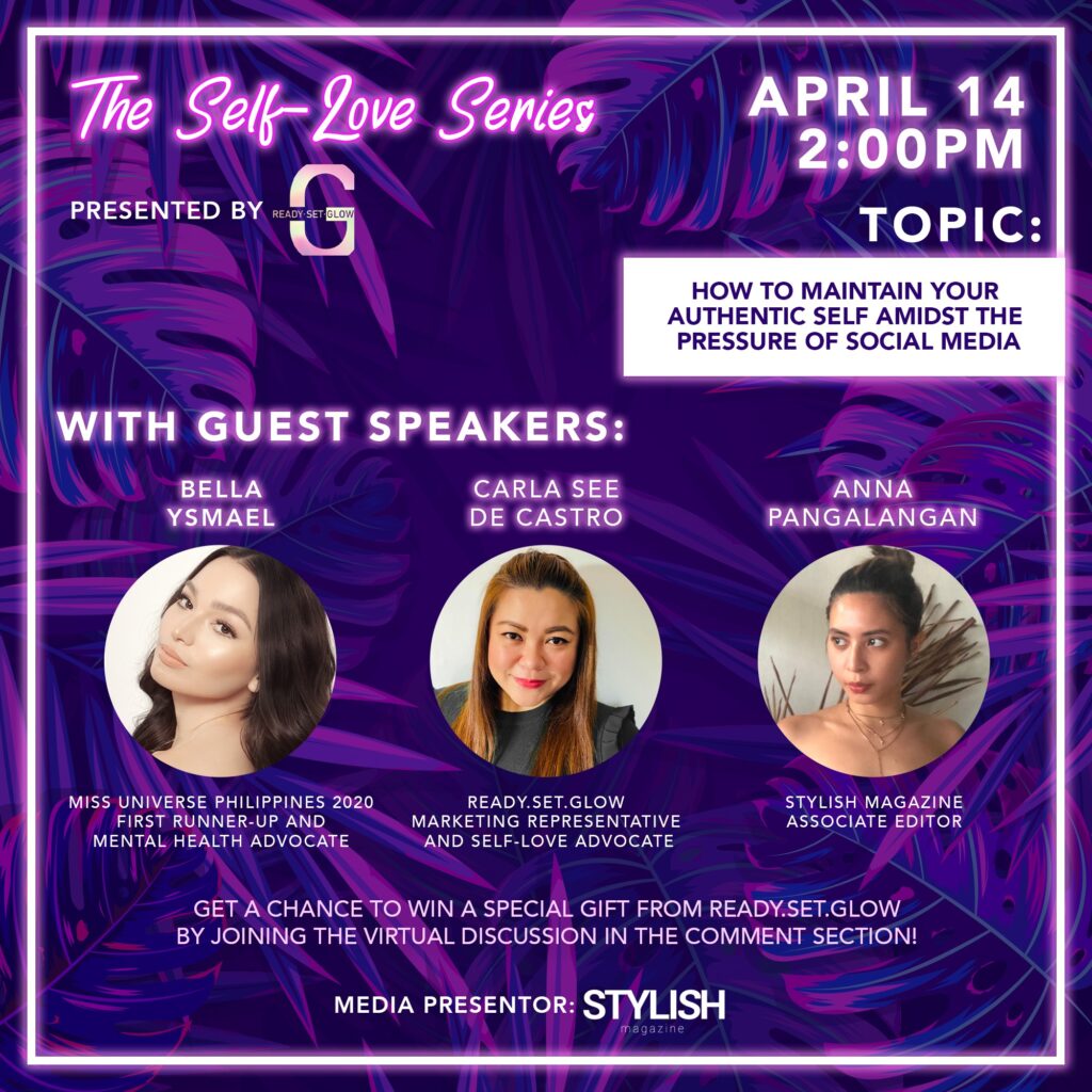 On April 14, 2021 at 2:00PM Manila time, Ready.Set.Glow is presenting a virtual panel discussion dubbed as The Self-Love Series via a Facebook Live, with Stylish Magazine as its media presentor. Joining the online panel discussion are Miss Universe 2020 1st Runner-Up Bella Ysmael, who’s also known as a passionate mental health advocate, Ready.Set.Glow’s Carla See De Castro and Stylish Magazine’s Associate Editor Anna Pangalangan. The online discussion will tackle the importance of self-love, embracing creativity in makeup and staying true to your authentic self despite the pressure of today’s social media culture.