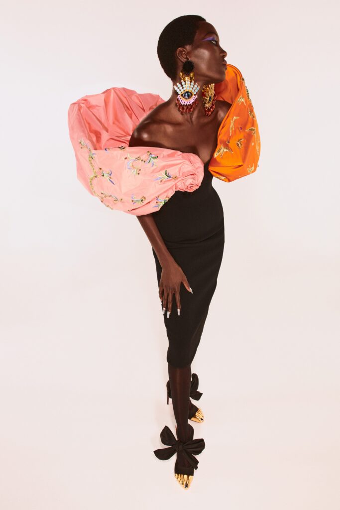 The France-based brand’s founder, Elsa Schiaparelli, is known for her matador jackets in the 1930s. And Roseberry took inspiration from a few swatches he found and gave eccentric, yet elegant designs.