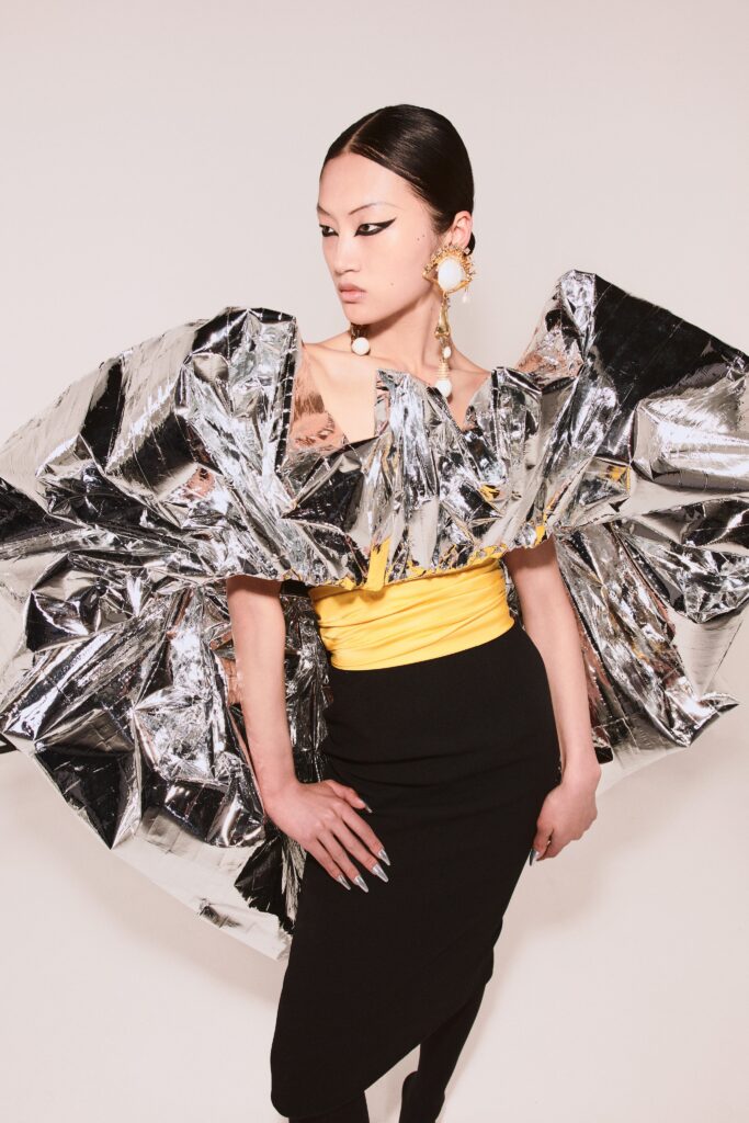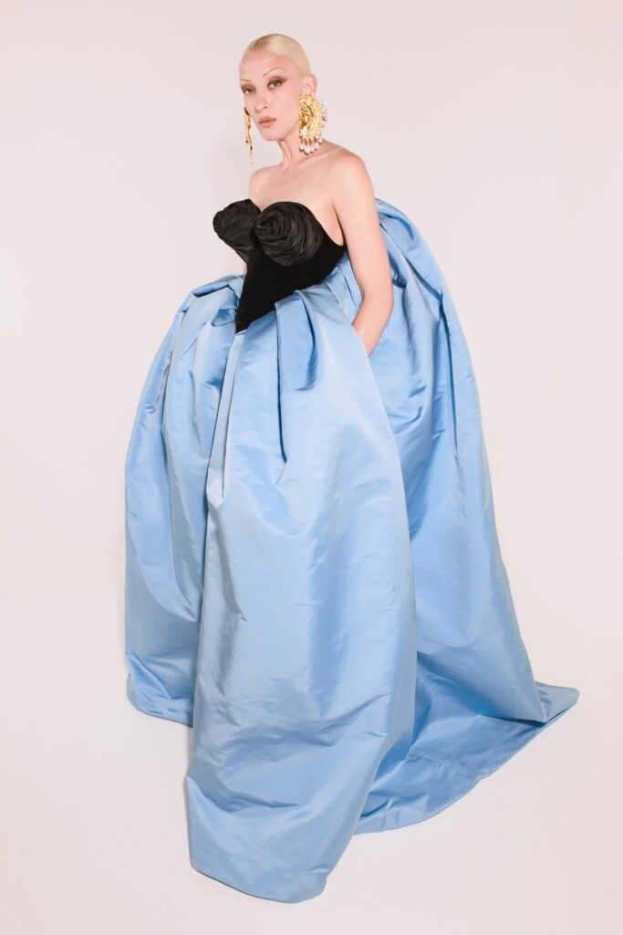 The collection was paraded virtually and Roseberry was grateful as they were working on a tight budget. “We don’t have those billion-dollar budgets, basically, and we’ve been really lucky with the digital because it’s really flattened the whole couture week so that the strongest collections can emerge,” he said.