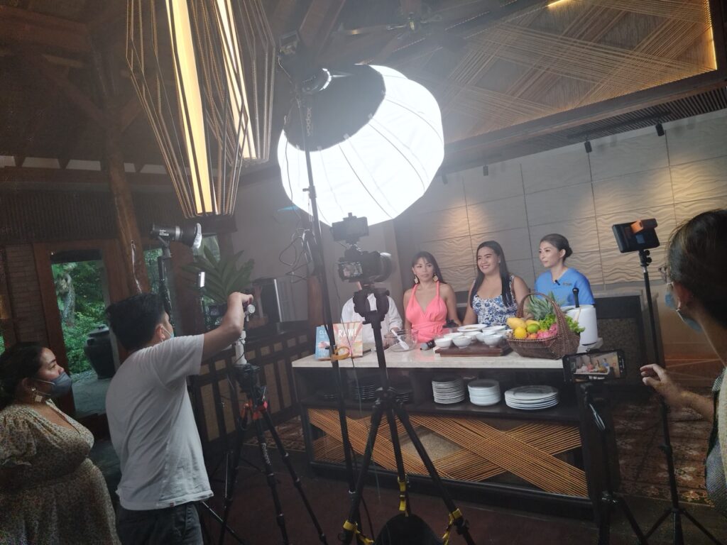 THE STYLISH CREW: Stylish Magazine editors Marane Plaza & Joy Coling filming the resort’s Food Prepartion Class for The Self-Love Series segment of Stylish TV, with The Farm at San Benito Head Chef Mari Pagcaliwagan & nutritionist Jean Bruce