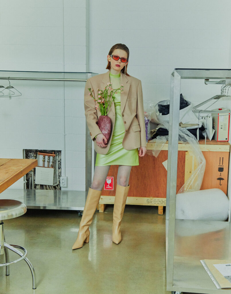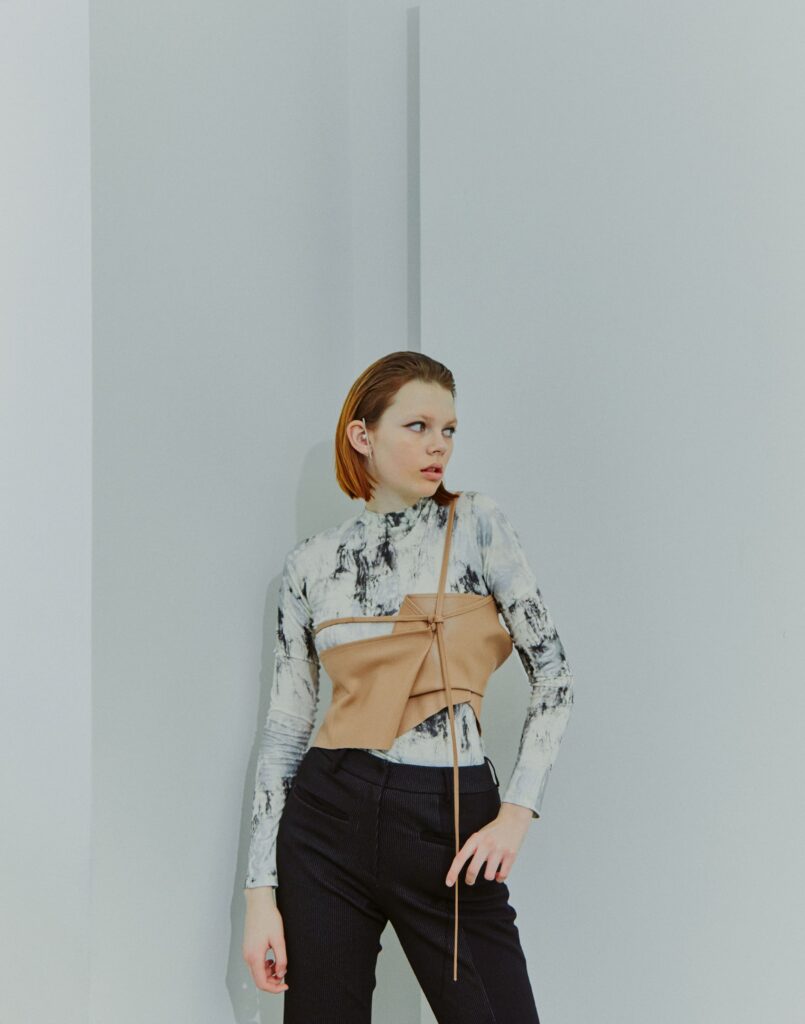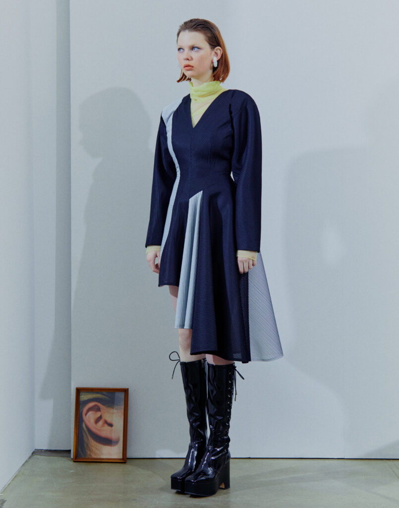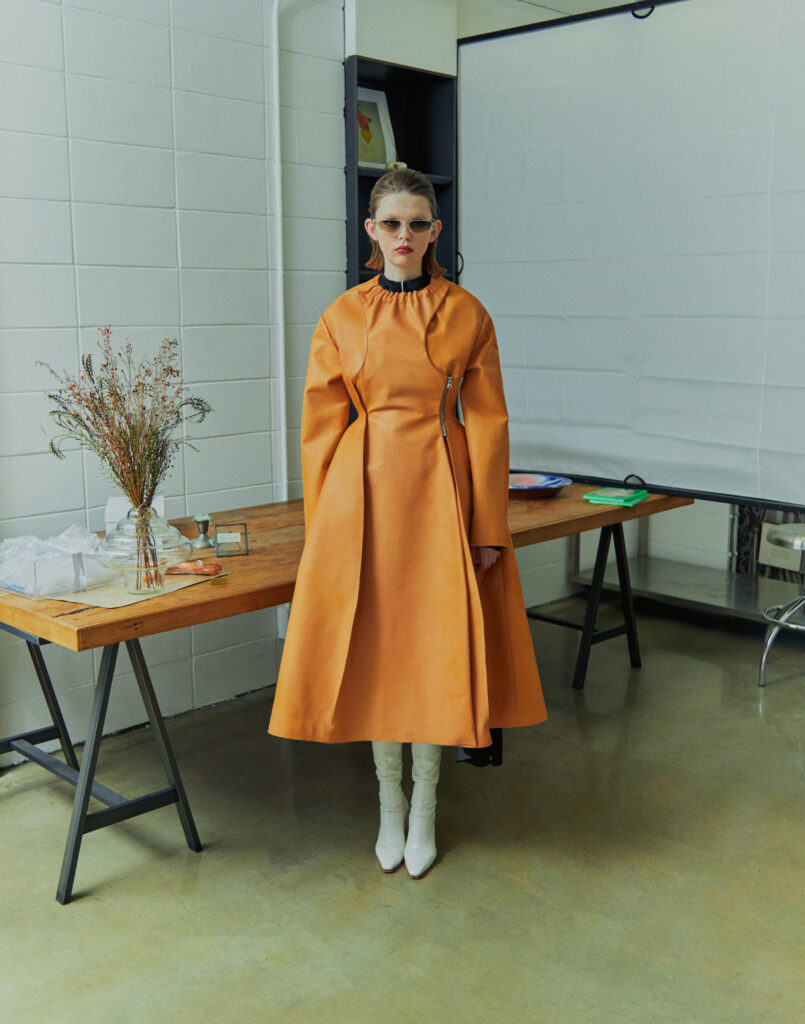 Jisoo Kim founded her womenswear brand KIMZISU in 2019 after studying fashion in Seoul and London. KIMZISU creates dynamic harmony in fashion inspired by diversity in society, or in an individual by combining uneven and eccentric elements. Establishing its bold yet feminine aesthetic, KIMZISU is about brilliant fusions of irregular shapes, asymmetric silhouettes, and the juxtaposition of contrasting fabrics. It is all about expressing unconventional characteristics, which is however, still uncluttered. Its Fall/Winter 2021 stays true to the brand’s style ethos:
