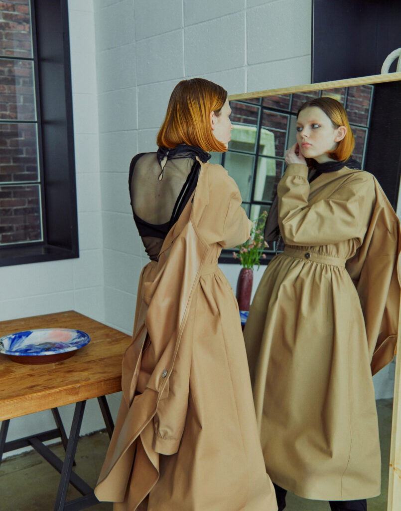 Taking pride in veering away from mass production, DOUCAN is all about creating intricate fashion pieces and making them wearable. Often inspired by nature, history, art and culture, DOUCAN’s designs are known for pieces with exquisite handmade ornaments with great details. The brand’s F/W 2021 collection showcases black and white creations in oversized sihloueets.
