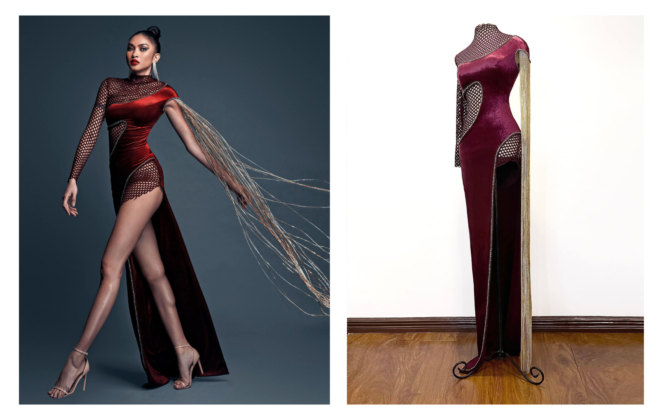 She completed her look with a cream, pink and black feather degradé long cape. The stars and stripes vibe of her overall look was a nod to this year’s Met Gala theme. It is also noteworthy that Serena used this event to give her Serena Williams Jewelry brand its red carpet debut.