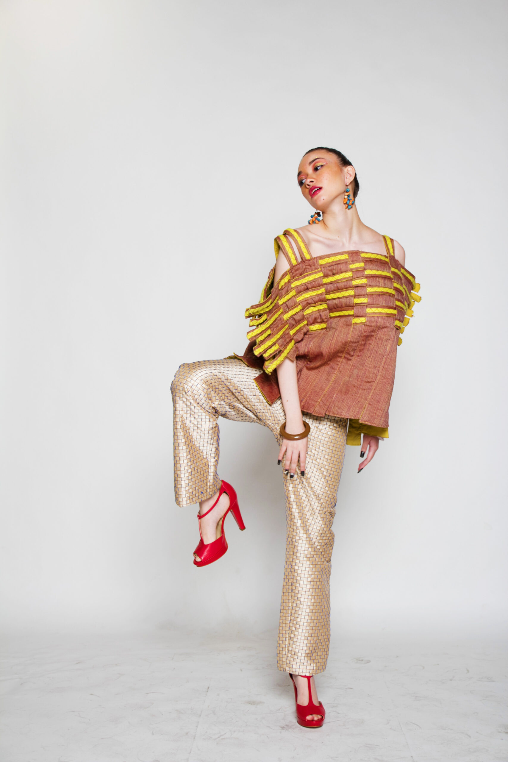 The other one is this outlandish off-shoulder creation woven from another Filipino indigenous fabric: