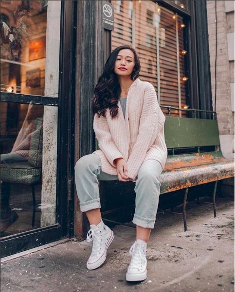 The jeans and cardigan combo is such a comfy outfit. And paired with high-cut Chuck Taylors, everything goes together for a casual yet edgy fashion aesthetic.