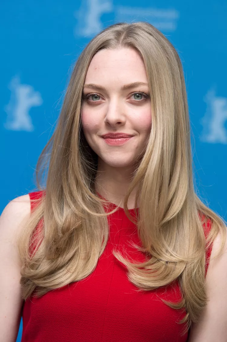 Amanda Seyfried’s long layers flow seamlessly, creating an old Hollywood glam look that is simply stunning.